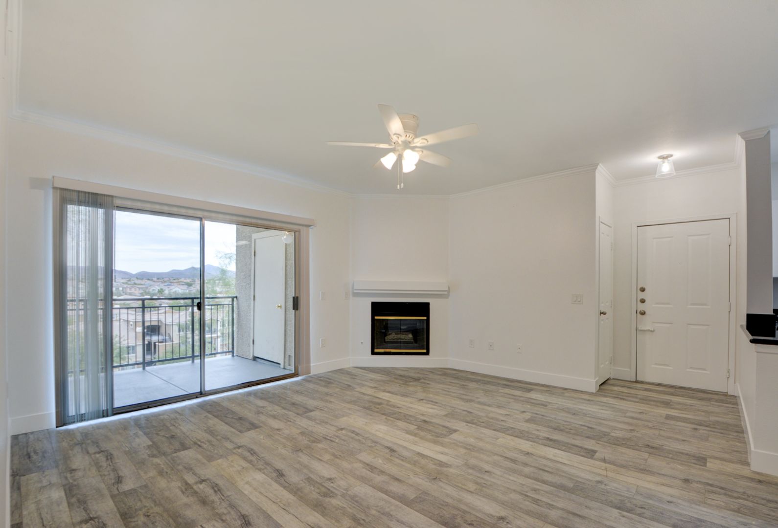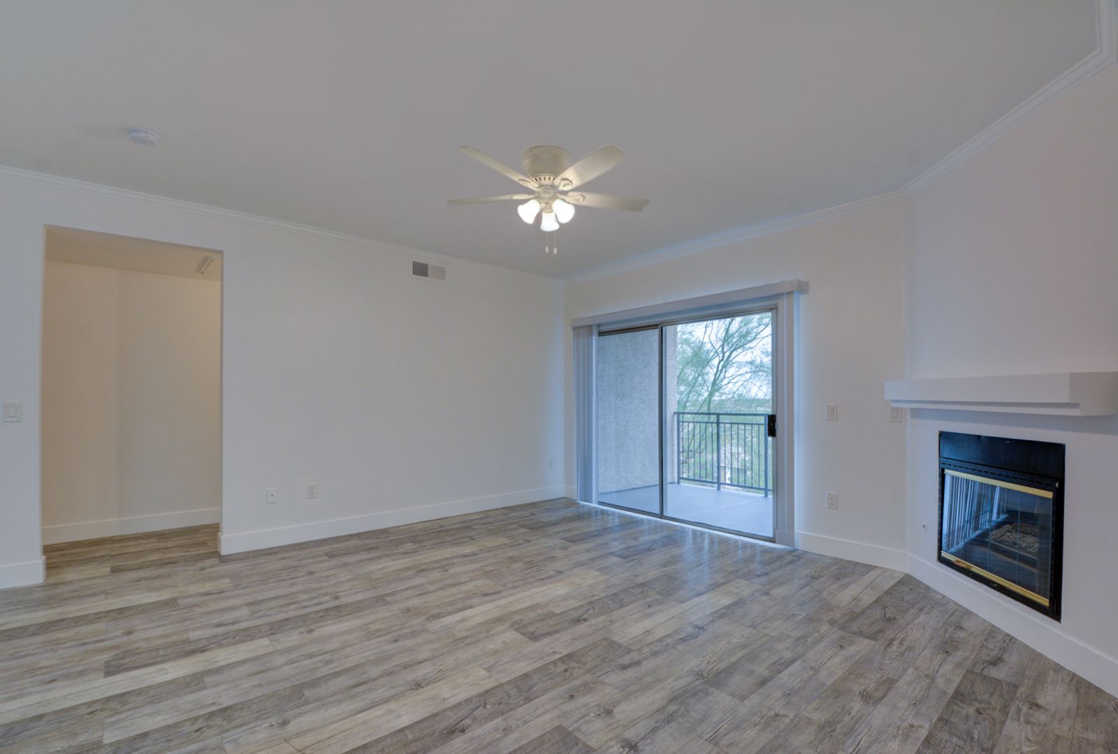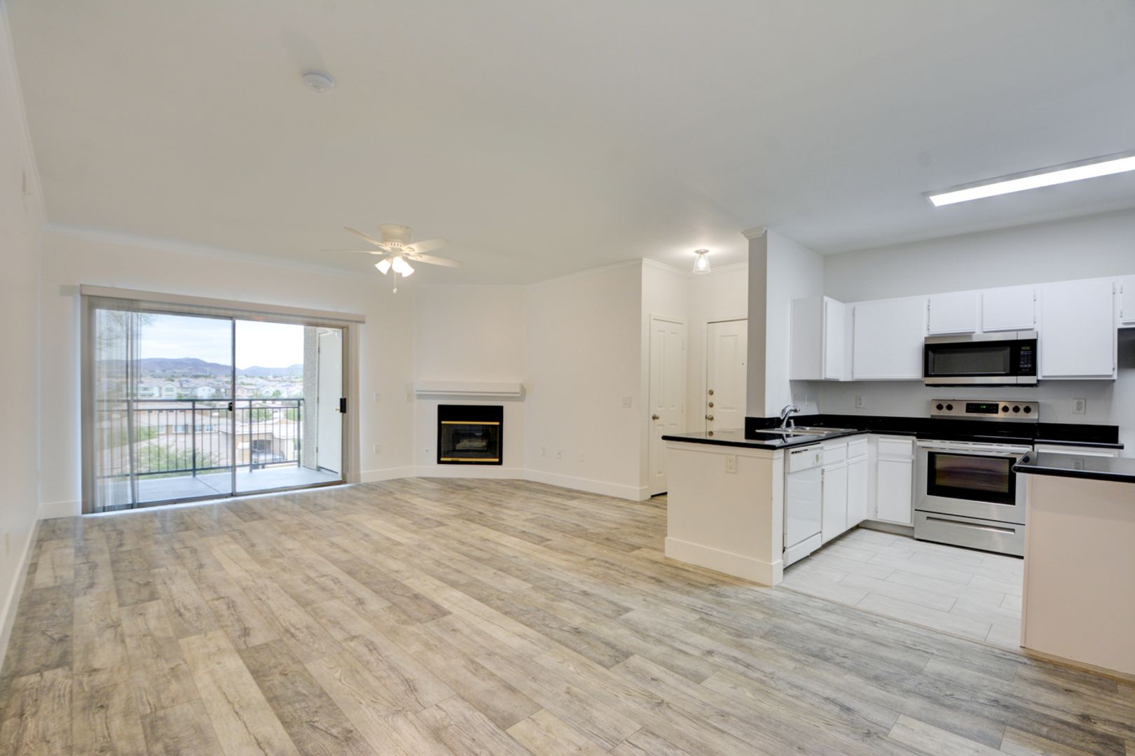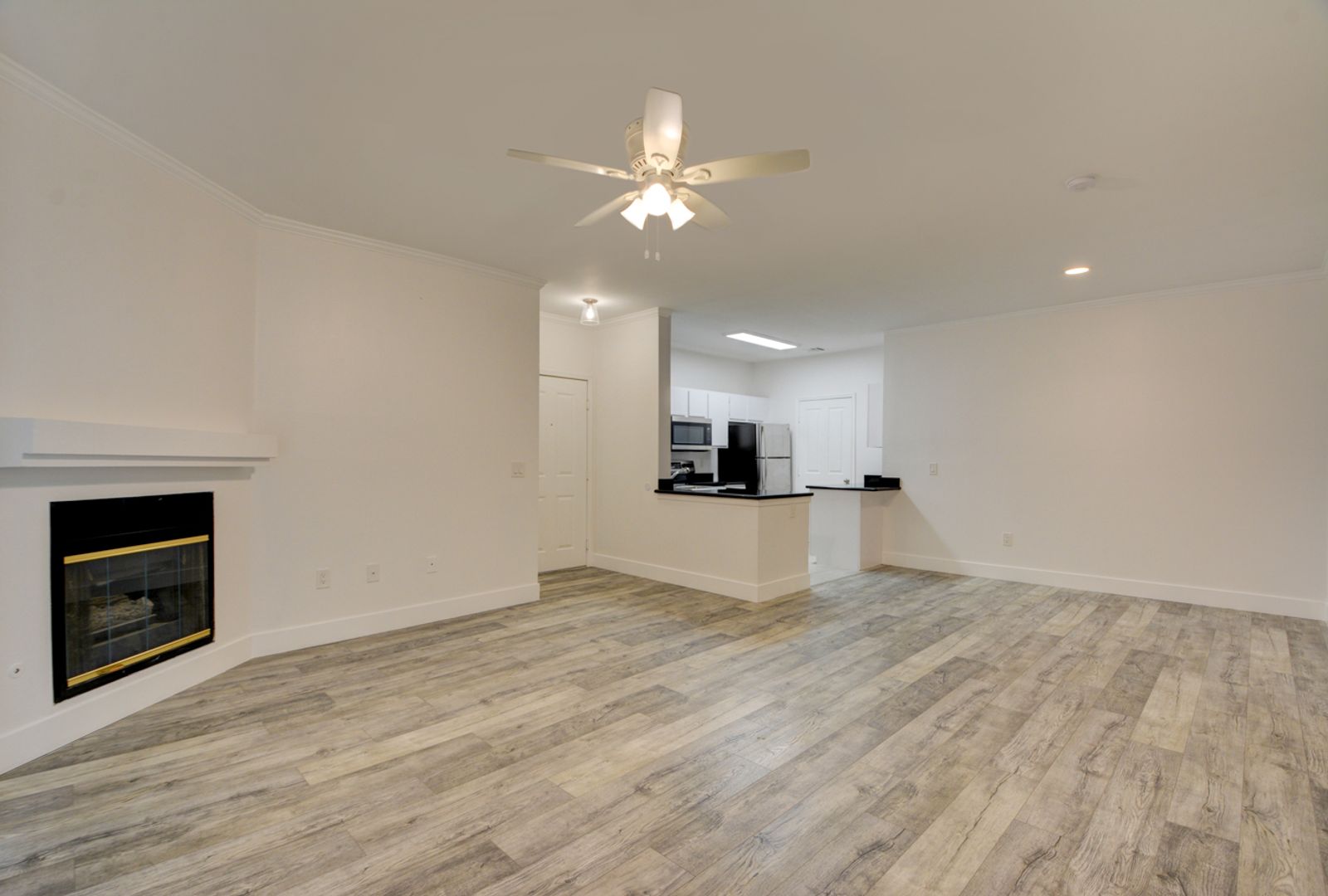 The living room has a gas fireplace.