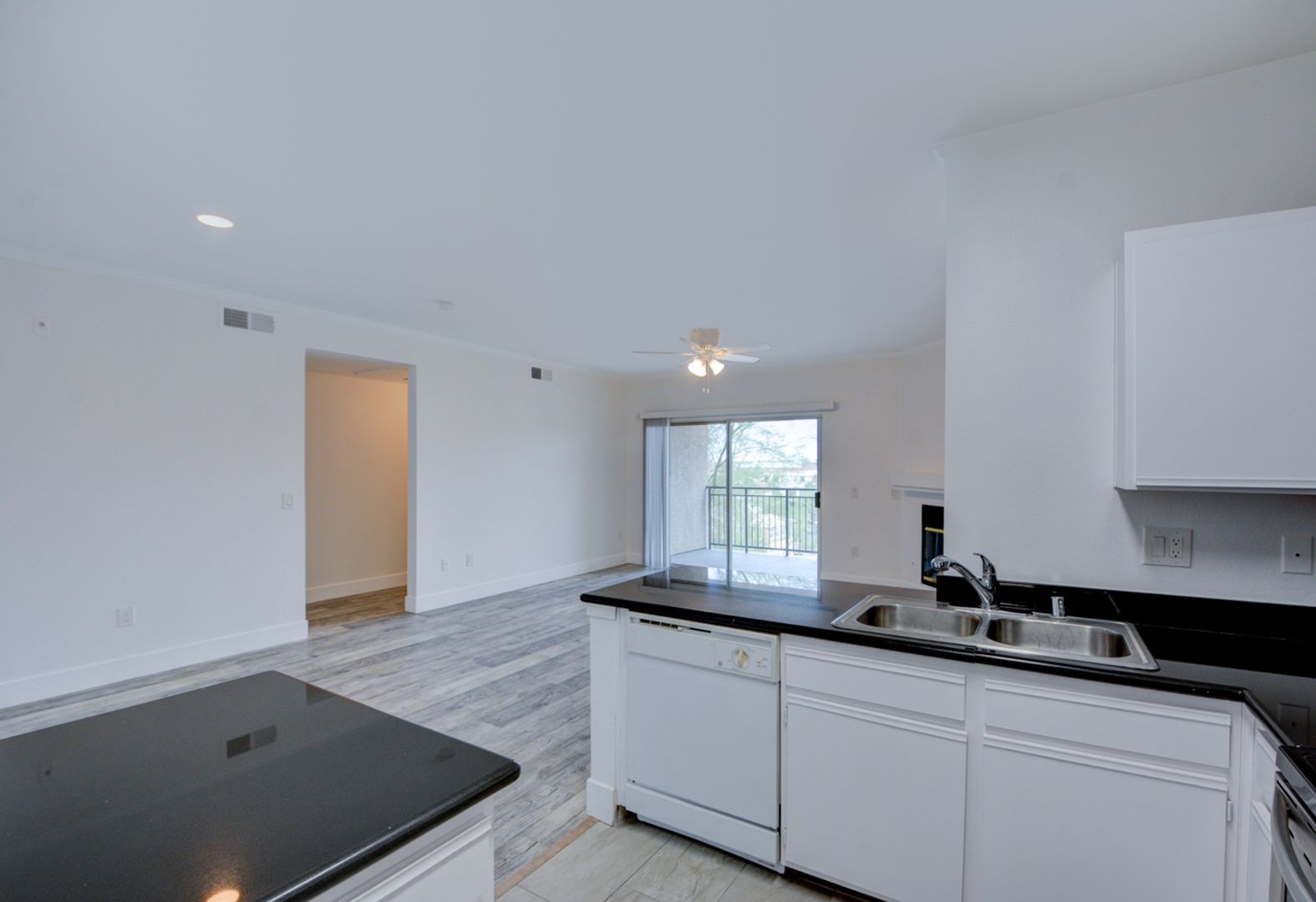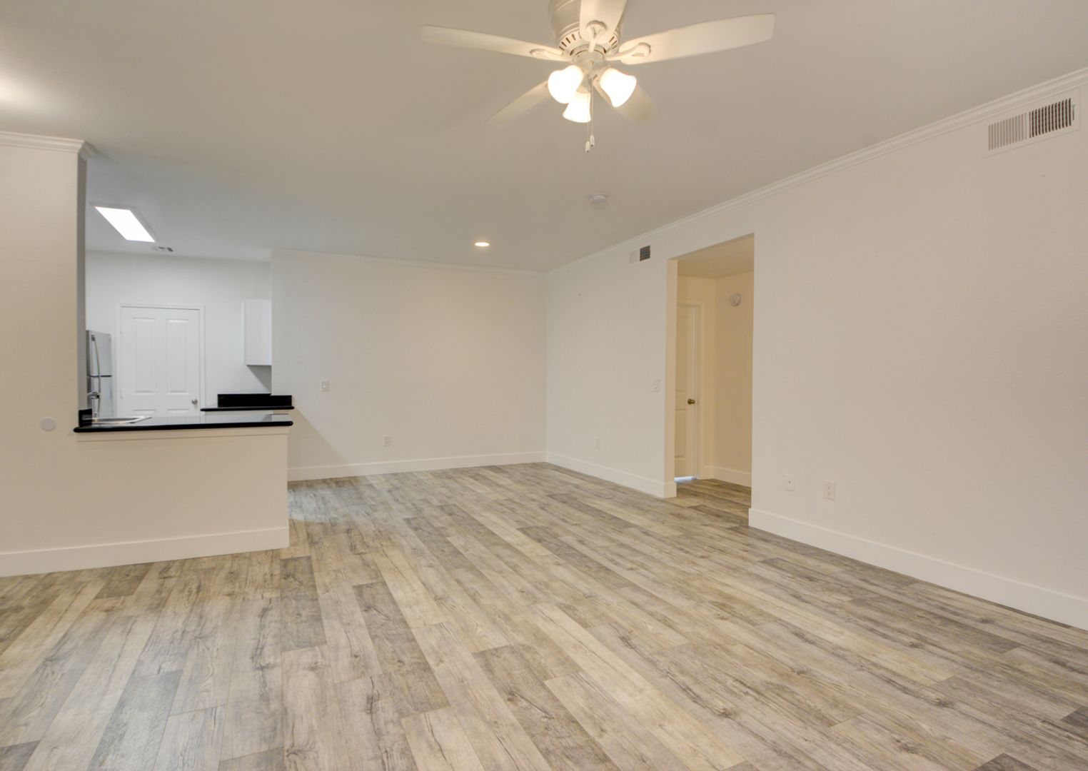 Gorgeous wood laminate flooring throughout living areas.