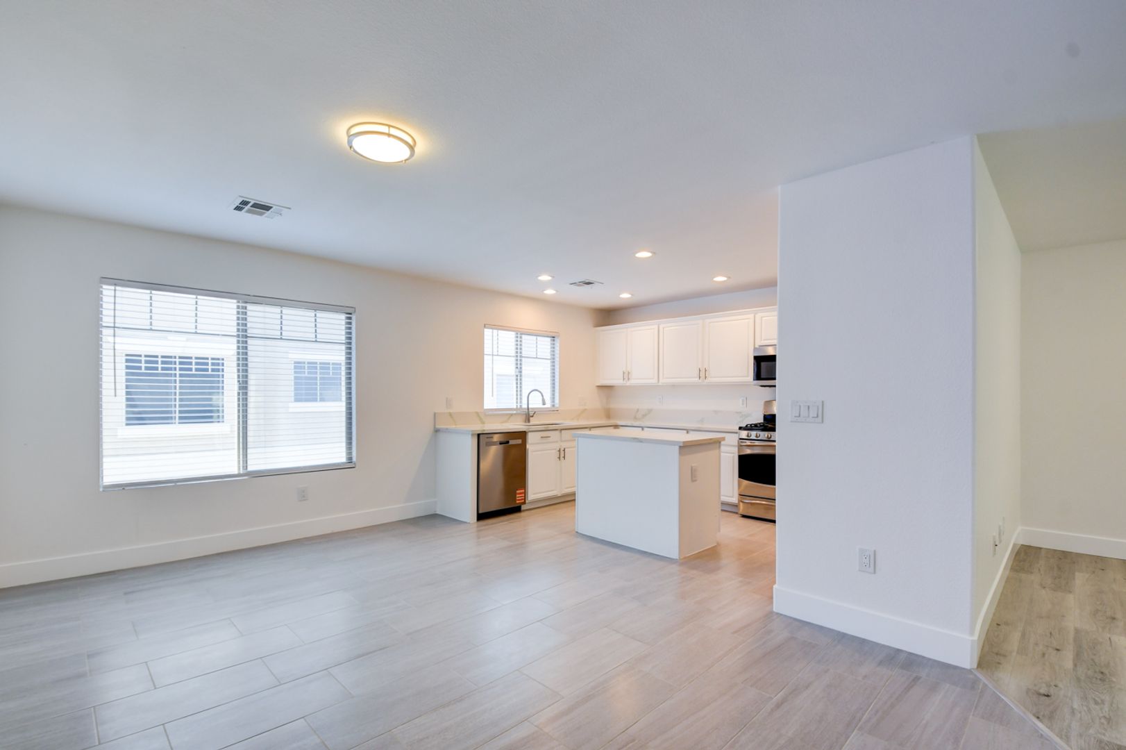 Three bedroom 2.5 bath townhome. This townhome has an open floor plan with a Tri-level feature. Enter the home from the downstairs garage level. The house has a large kitchen with a small patio attached—recessed lighting.